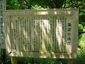 万年太夫藤原高利とは、鎌倉時代に信州(長野県)諏訪大社に仕えた人物で、諏訪神社(日立市)の神官になり、晩年には、自ら夫婦の坐像を彫った後に、信州諏訪湖に通じるという水穴に入り、ついにもどらなかったという伝説があります。